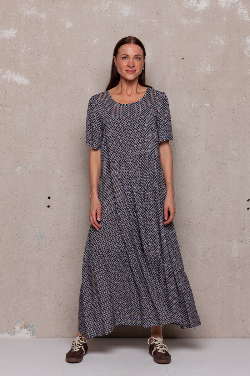 Suknelė yra pasiūta iš tekstilinės medžiagos.